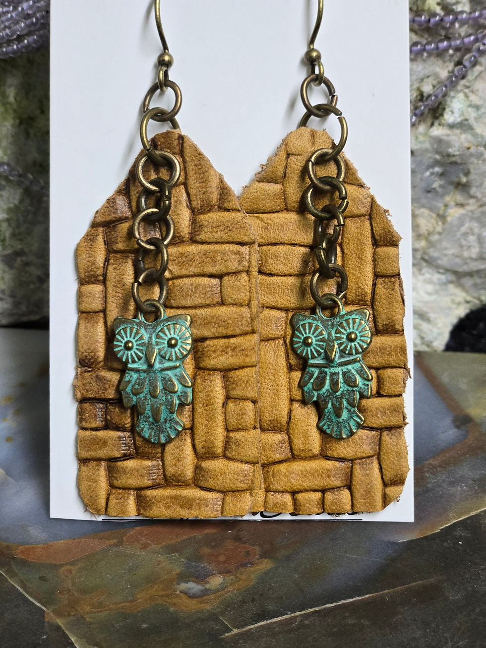Tan Leather Basket Weave & Brass Owl